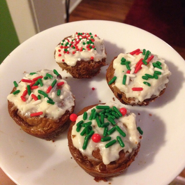 This recipe made 24 mini cupcakes which would probably make about 6-8 regular size cupcakes. They are 32 cals per cupcake (frosting included) and macros were 3.7C/.5F/3.3P per serving. Pictured below are some I threw into a flexbowl! 👍